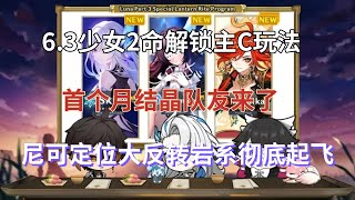 (原神)6.3少女2命解锁主C玩法!首个月结晶队友来了,6命48%曜升加成!尼可定位大反转,岩系彻底起飞!