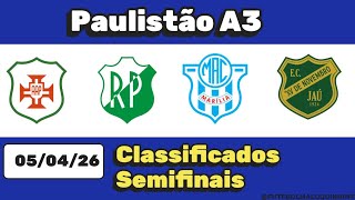 Tabela Paulista A3 2026. Classificados Semifinais Campeonato Paulista A3 05/04/26 | Serie A3